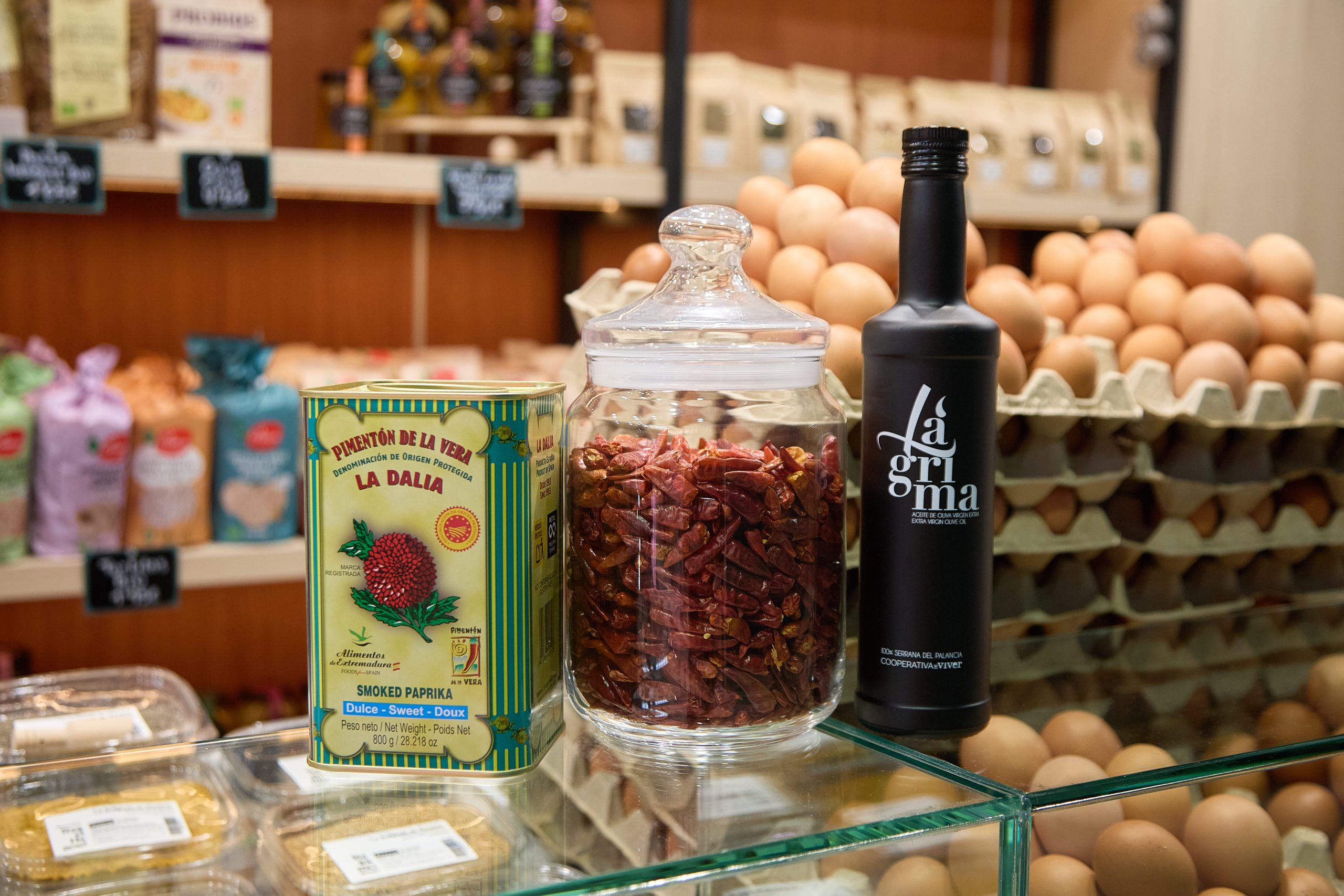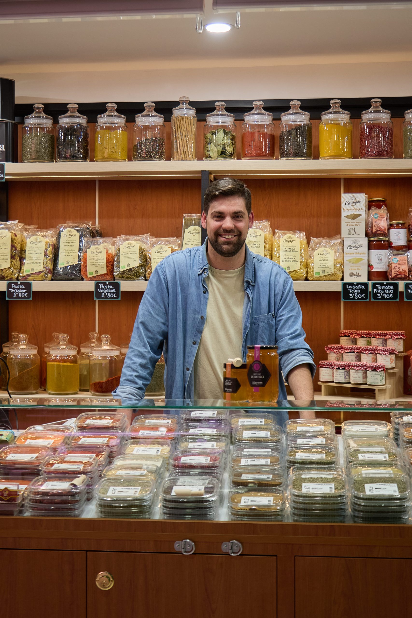 Ultramarinos: venta de legumbres a granel, huevos de corral, mermeladas, mieles, especias, infusiones, aceite, conservas, arroz y un largo etcétera.